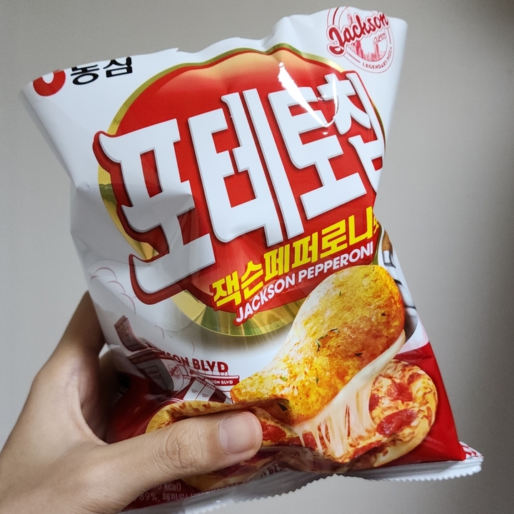 아부지께서 사다주신 간식꾸러미에 들어있던 포테토칩 잭슨페퍼로니맛🍕 페퍼로니...? 맛은 절대 아니고 벌집피자 과자 갈아서 포테토칩에 얹은 맛이 난다 ㅋㅋ 그냥저냥 먹을만 했음 #eun_item