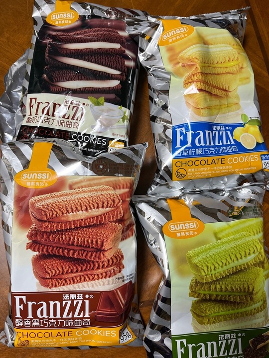 중국 기념품 과자로 많이 나오는 프란찌 이제 한국에서도 판다는데 가격은 더 비싸겠지? 맛이 꽤나 다양한데 먹어보니 요거트초코가 맛있다! 식감이 버터링 같이 아주 부드러운 과자에 크림이 들어간 맛인데 달지 않아서 좋다