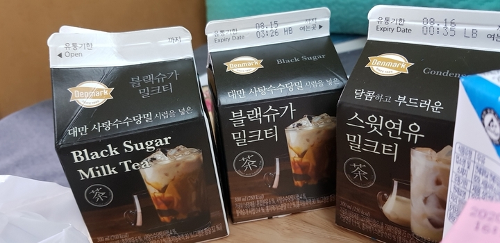 덴마크 흑당은 저만 맛이 없나보군요...ㅋㅋㅋㅋㅋㅋ 뭔가 미묘하게 우유진한맛...? 같은 느끼함이 올라와서 기대 와장창이었는데 지금 보니 혼합분유가 6퍼센트!!! 식물성크림과 유청분말 등등 원유보다 다른게 많아서 느끼했나봐요^_ㅠ 현재까지 편의점 흑당은 타이거슈가>>>골든드랍>>덴마크입니다. #흑당밀크티