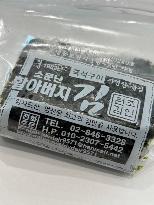 김켓팅에 성공해서 소문난 할아버지 김을 먹어볼 수 있었다 🤗 보통 김보다 더 두껍고 바삭하다 김부각이 되다 만 김이랄까? 두께는 동남아 가면 사오는 그 김과자보다 살짝 더 얇은 수준이다 그리고 김 자체의 맛이 엄청 진하고 이게 식감이랑 같이 시너지를 내면서 ☝🏻김만 있어도 맥주 두 캔은 먹겠다 ☝🏻맨밥에 김만 먹어도 맛있다 맛잇다 하면서 먹을 수 있다 물론 비싸지만 양이 진짜 많고 냉동보관 가능하니 꼭 드셔보세요 쫀맛
