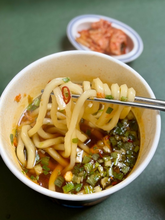 맛있다. 그러나 미역우동만 못하다. 김치 고명이 실하고 시원 칼칼한 국물이 맛있다. 김치의 산미와 고명으로 들어간 고추의 맵싹한 맛이 기가 막히게 어우러지지만! 미역우동을 이미 맛본 상태에서 김치우동 포장을 뜯으며 나는 너무 기대를 많이 했던 것이다. 아무래도 미역우동이 너무 훌륭했다.