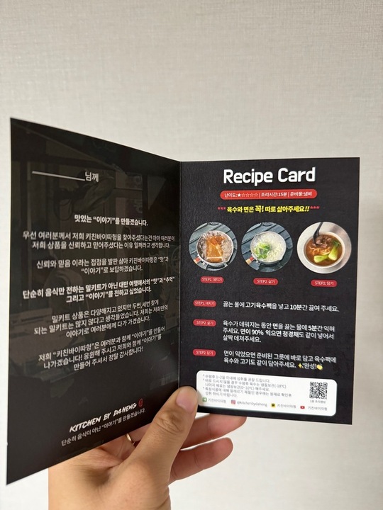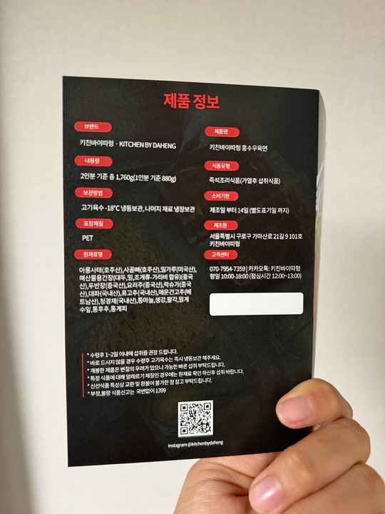 홍소우육면 밀키트 하나만 판매 중인 단일 메뉴 전문 스마트스토어/인스타그램 동시 운영중 밀키트 치고 가격대가 높은 편이지만, 그만큼 들어간 재료도 육수도 충실한 맛이 나서 만족도가 높았다. 방문한 날에도 스마트 스토어 주문이 많아서 1개 빼고 전부 판매 완료 제품이라 마지막 1개 사서 나눠 먹어야 했을 정도. 향신료가 듬뿍 들어가 특유의 향이 굉장히 진한데다 매콤하고 얼큰하고 은근하게 달아서 국물만 끓여서 술을 마시고 싶은 ... 더보기