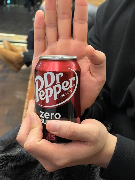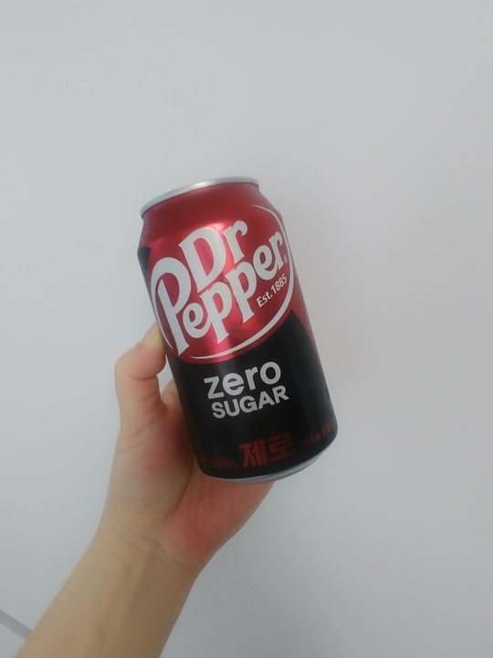 엄지와 검지 사이에, 검지와 중지 사이에 캔 하나씩 끼우기. 늘 궁금해 하다 처음으로 마셔 봤다. 닥터페퍼 좋아.