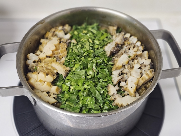 음... 전복이 싱크대 위에 올라가있습니다. 뭔가를 만들라는 것이겠군요. 냉장고를 열어보니 샐러리가 있어서 전복솥밥이나 해야겠다 싶습니다. 전복버터구이 같은 걸 만들면 파스타 등 식사메뉴를 따로 만들어야 하기 때문에 한 큐로 끝낼 수 있는 전복솥밥이 딱! (이라는 계산을...) 결론적으로 말하자면 전복솥밥도, 더 손이 많이 가는 전복죽도 만들어야 했습니다. 그냥 전복버터구이랑 파스타나 만들 걸...