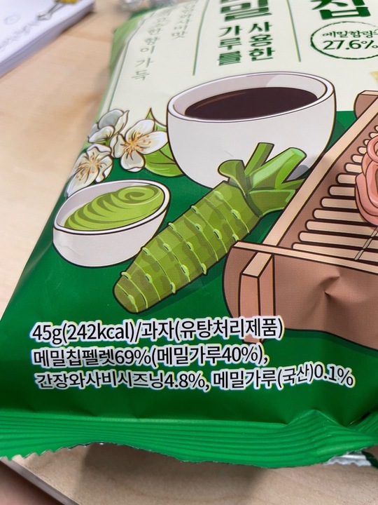 전체적으로 요즘 과자답지 않게 슴슴한데 가끔 고추냉이가 톡 쏘아 줍니다. 입이 심심할 때 먹기 딱 좋아요.
