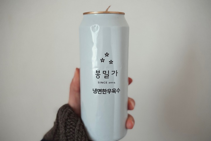 제 마음속 대한민국 평양냉면 1등 맛집 봉밀가, 평냉 궁물을 캔으로 구매 가능한 거 알고 계셨나용? 요거요거 요물이예요. 집에서 곰탕이나 떡꾹 끓일 때도 너무 편하고요. 캠핑 가서도 요긴한 아이템. 심지어 술마신 다음날은 그냥 한 캔 들고 출근합니다. 홀짝홀짝 마시다보면 해장 끝. 오늘도 한 캔 들고 출근해서 오전 내내 마셨더니 해장이 수월했네요?! 네이버 스마트 스토어에서 구매 가능하고, 한 캔에 6,000원. 후기 쓰다보니 ... 더보기