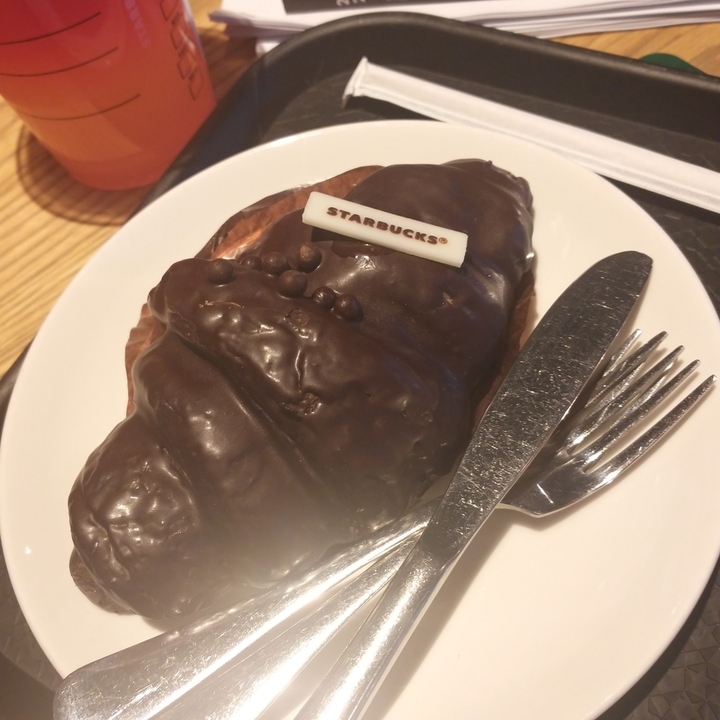 호평 일색이어서 꽤 기대했는데... 스타벅스 베이커리 중 하나입니다(이제 몬주 다들 아시죠?). 우유 크림과 초콜릿이니까 그래도 당연히 어느 정도 평타는 치지만 크루아상의 결을 기대하면 곤란해요😉