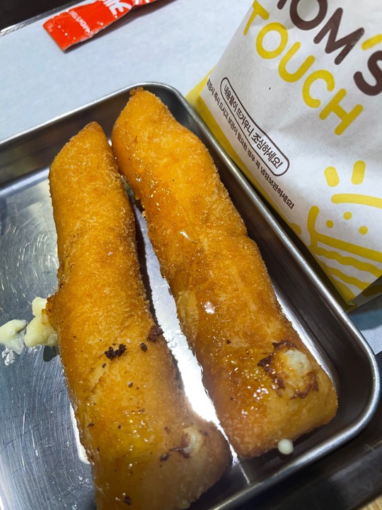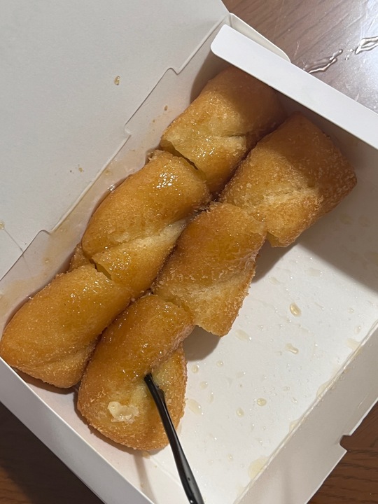 저는 3.5정도로 별점을 매기긴했지만 일행은 인생 사이드메뉴라고 하더라구요 맛을 떠나서 누가 이런 맛천재같은 생각을 한건지 신기합니다 저는 꿀…이라기보단 시럽 맛이 느껴지더라구요 메이플 시럽맛.. 크림치즈는 맛있어요 근데 그 특유의 시럽맛이 저는 별로였어요 약간 커피향도 납니다 한번 먹어본것으로 만족!