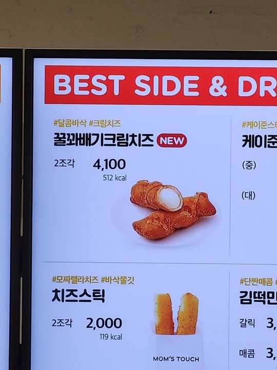 사이드는 프렌치프라이 한놈만 팬다 인간인데요 메이플시럽에 절여진게 크림치즈 쿰쿰한 맛이랑 제법 괜찮더라고요 그래도 바삭취향인 저에겐 프라이가 더 맛있긴 합니다 ...