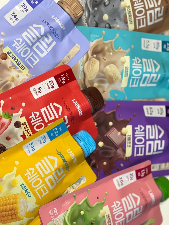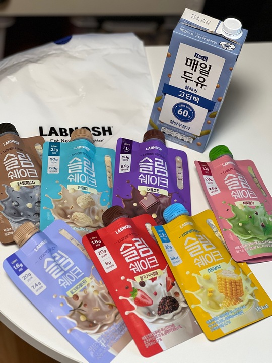 랩노쉬 슬림쉐이크 7종 🥛 이번에 네고왕 할인이 있길래 궁금했던 단백질 쉐이크를 구매! 확실히 파우치 형태라 간편하고 한번에 먹기에 깔끔하다. 매일두유에 어울리는건 역시나 인절미와 로스팅흑임자 맛이었다. 달달한 맛은 우유랑 잘 어울린다. 할인 끝나고 가격을 보니까 또 먹긴 어려울 듯.