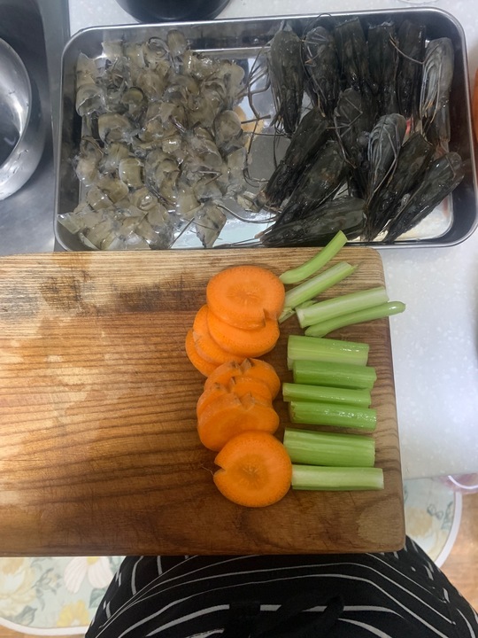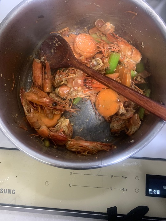 Rosé Bisque Bucatini 냉털 비스큐파스타 •재료 블랙타이거새우(냉동),당근,샐러리,꼬냑(화이트와인 대체가능),토마토페이스트,크림,파스타(부가티니) ((도구 : 냄비,팬,믹서(핸드믹서가능))) •공정 1. 비스큐소스 새우를 손질해 기름에 머리부터 볶는다. 머리가 어느정도 볶아지면,새우껍질과 갖은 야채(당근,샐러리)를 넣고 달달 볶다가 꼬냑으로 플람베를 한다. 토마토페이스트 쪼금 추가해 볶다가 작은 양에 물을 넣... 더보기