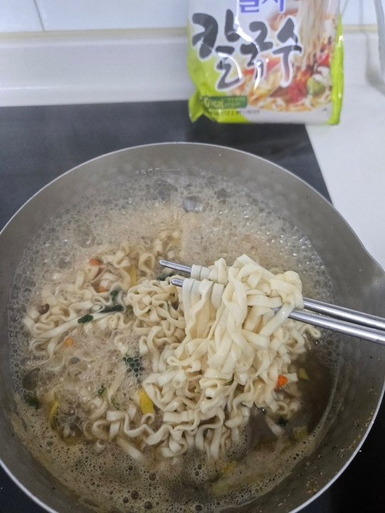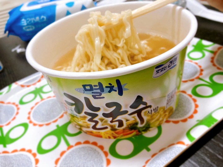 농심 '멸치칼국수' "짭짤하고 두꺼운 면 당길 때" 예전에는 이게 무슨 맛인가 싶었는데 점심도 먹는둥 마는둥 하다가 저녁에 먹으면 꽤 맛있다. 완성 사진이 없는 이유는 그저 배고파서.. 밥까지 말아주면 하루 열량 보충 완!