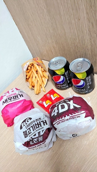 매콤한 청양마요 소스가 들어간 불고기 4DX 달달하기만 한 불고기 버거 보다 패티도 한장 더 많고 느끼함도 잡아줌 불고기 버거랑 같이 7000원 행사중 새우버거랑 감튀도 추가
