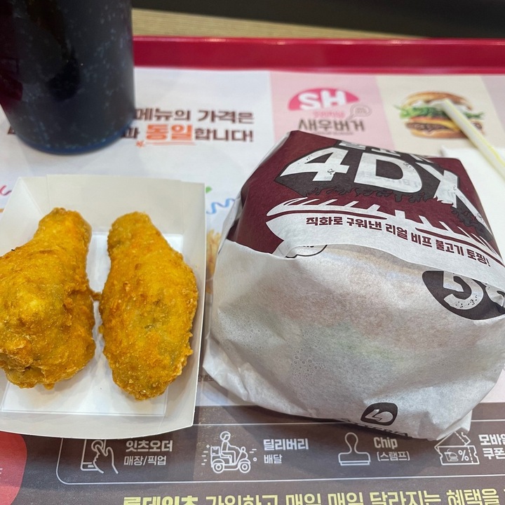 잘 안가는 곳인데 누가 지나가는 말로 괜찮다고 얘기했던게 기억나 들렀다. 가격이 가격이니 대단한 불고기를 기대하진 않았고 달달한 불고기가 들어있을 줄 알았으나 꽤 괜찮은 양념의 불고기였다. 마요소스가 조금 더 매콤했으면 좋았겠는데 그게 좀 아쉬웠고, 토마토처럼 상큼하면서 산미가 있는 부재료가 들어있었으면 나름 맛의 균형이 맞았을 듯. 열어보고 양상추에 패티와 불고기만 들어있는 것을 보고 조금 실망했음. 천원정도 더 내고 바꾼 윙... 더보기