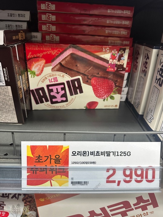 헉 마 맛있는데요? 저는 오히려 그냥 비쵸비는 먹을 때마다 흠 그냥 비스킷 초콜릿 비스킷이군 (그것을 의도했음을 알면서도) 싶었는데 이 친구는 좀 딸기맛 초콜릿이 사르르 녹는 느낌? 단점이라면 탕비실에 계속 들여놓기엔 적은 양과 비싼 가격