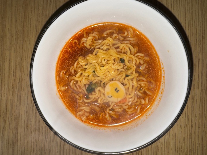 선물받은 꿈돌이라면. 맵기조절 스프는 안넣었는데 은은하게 맵네요(매운 거 못먹는 편) 그 와중에 꿈돌이 어묵이 매우 귀엽습니다 전체적으론 깔끔한 맛.