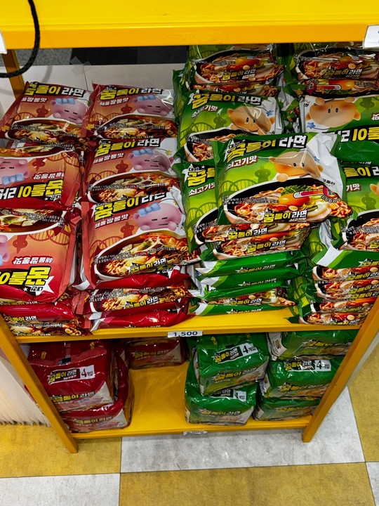 꿈돌이 라면을 아십니꽈!! 대전역과 버스터미널 등지에서 판매하고 있는 기념품라면입니다. 얼마전에 새로 생긴 유성터미널에서는 직접 끓여먹을 수도 있게 해뒀어요. 봉지라면도 있고 컵라면도 있어요. 초록색 쇠고기맛과 빨간색 짬뽕? 맛도 있습니다. 아니 저 귀여운 꿈돌이 어묵좀 보시라구요!! 엑스포 못가본 사람들은 모른다 몰라...저 귀여움... 맛은 육개장과 진라면이 섞인듯한? 매운맛을 조절할 수 있어서 맵찔이에게는 좋았습니다.... 더보기