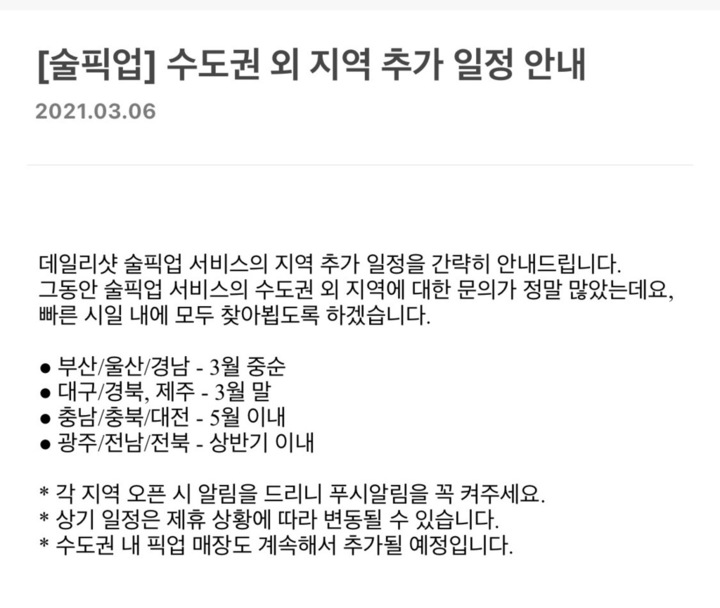 '우리동네 술 할인앱'을 표방하는 앱이긴 한데, 전 동네에서 위스키 픽업 가능하다는 트윗 보고 알게 된 거고(데일리샷 측에서도 지금은 이쪽을 더 미는 것 같고요) 동네에 웰컴드링크 제휴점도 없어서 ㅎㅎ 시험삼아 위스키 탭에서 제일 싼 라벨5를 구매해봤어요. 토요일 낮에 결제하니 월요일 이른 저녁에 매장 배송 완료 톡이 왔고 매장에 픽업 가능한지 전화 후 방문해서 신분증 확인 거친 후 픽업했습니다. 전화가 좀 귀찮긴 한데(점바점... 더보기