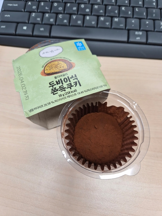 그 유명한 쿠키집인 올어쿠와 씨유에서 콜라보한 제품인데 가격은 4700원. 냉장에서 꺼내면 실온에 좀 두고 먹어야 말랑하고 필링은 더 녹진하다. 카카오파우더향이 꽤 진하면서도 부들부들한 느낌이고 피쵸맛도 꽤 진하고 녹진한 스타일이어서 맛있었다!! 일단은 gs에서 파는 모모즈랩보단 더 만족스러웠다😆 프랜차이즈+편의점에서 나온 두쫀쿠 중에 퀄리티가 가장 높은거 같다🤔
