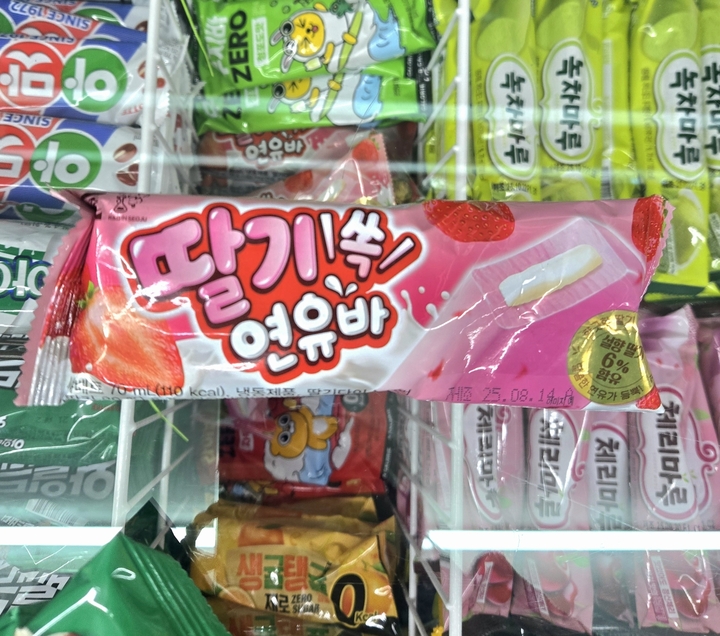 서주 '딸기쏙연유바' "주욱 늘어나는 연유가 쏙" 절임통딸기라도 하나 든 줄 알았지만 놉. 처음부터 끝까지 부드럽게 즐기는 아주 달콤한 딸기바다! 연유는 느끼해서 웬만하면 안 먹는데 차갑게 먹으니 눈꽃빙수의 그 얼음들 같아서 겉에 딸기 아이스크림과 잘 어울린다. 쫀득하게 늘어나게끔 해서도 있는 듯. 다만 속에 있는 연유가 줄어들지 않는다면 앞으로의 구매는 기약이 없을 것 같다.