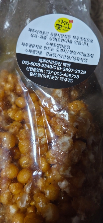 제주 아라곳간 오란다. 무우조청으로 만들었다는 오란다. 딸내미가 여행가서 사왔어요. 요거 딱딱하지 않고 부드러워서 맛납니다.
