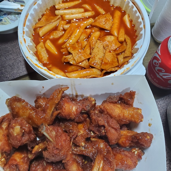 달달한 떡볶이에 달달한 치킨이라 금방 물리는 편 치킨 튀김이 너무 딱딱하다 엽떡에 허니콤보 가성비버전으로 나온거같은데 그냥 엽떡에 허콤이 더 나음ㅠ