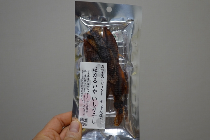 오츠마미레전드 호타루이카 이시리보시(おつまみレジェンド ほたるいか いしり干し) 일본의 3대 어간장이라고 부르는 이시카와현 노토 반도의 전통 어간장인 이시리를 사용해 말린 반건조 호타루이카 제품 입니다. 별도 조리 없이 바로 먹을 수 있어 맥주 안주로 제격이네요. 이시리는 오징어내장을 소금에 염장해서 교반을 한 뒤 숙성해서 만드는 어간장이라고 하는데 간장 자체의 맛도 궁금하네요.