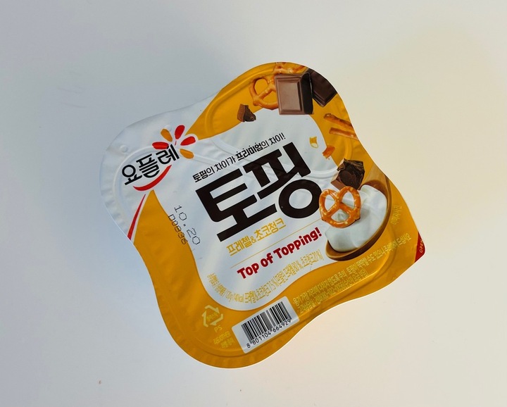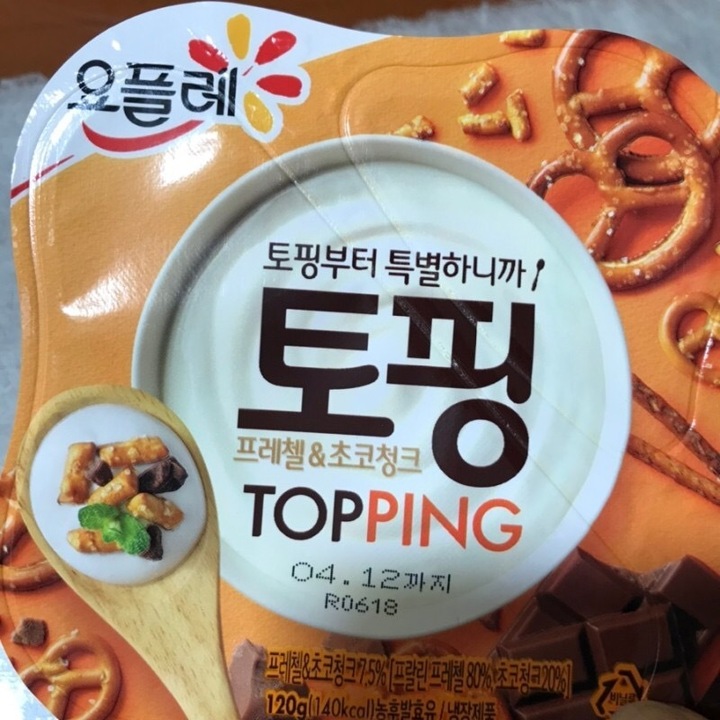 요플레 토핑 프레첼&초코청크 꺽어먹는 요거트 중에서 젤 좋아합니다😋 오독오독 프레첼에 초코씹히는게 그냥 초코볼보단 낫다는 생각
