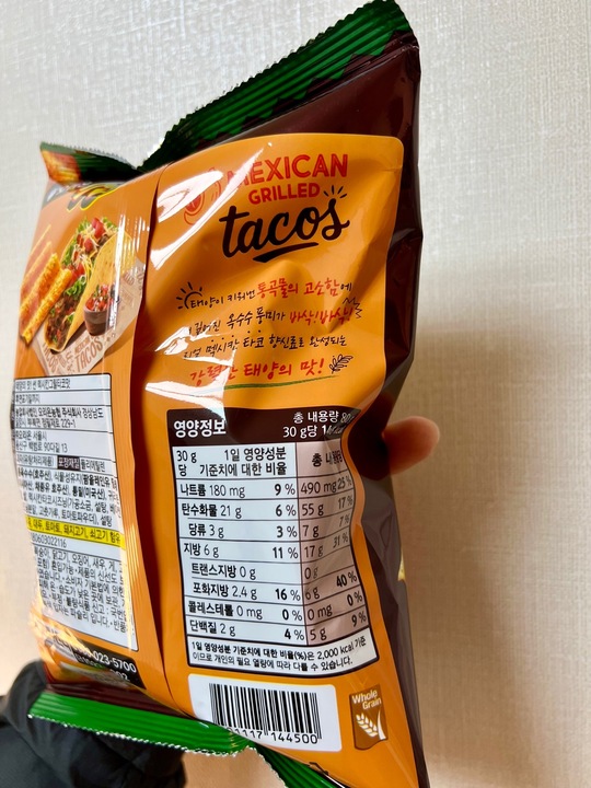 옥수수 베이스에 타코맛이니 보장된 맛이긴 한데 제 입맛엔 아주 잘 맞았어요. 딱 적당하게 혀를 자극시키는 향신료 느낌에 짠맛도 세지 않았구요. 연말에 괜찮은 맥주 친구 하나 추가요!