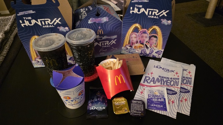 헌트릭스 밀 엘에이는 품절났었다고 해서 쫄았는데 샌디에고에서는 수월하게 구매했어요 라면감튀는 옛날에 먹던 롯데리아 양념감자 생각났었는데 맛은 훠어어어어얼씬 짜요 양념감자가 더 맛나요... 짜다는 후기가 많았어서 감튀에 소금도 빼고 시켰는데 너무너무너무 짰어요 그리고 저 보라색 소스는 그냥 머스타드 헌터소스도 그냥 스윗칠리맛이였어요 더피 맥플러리는 밀에 포함되지 않아서 따로 주문했눈데 팝핑보바가 있어서 나름 괜찮아요 무엇보다 1... 더보기