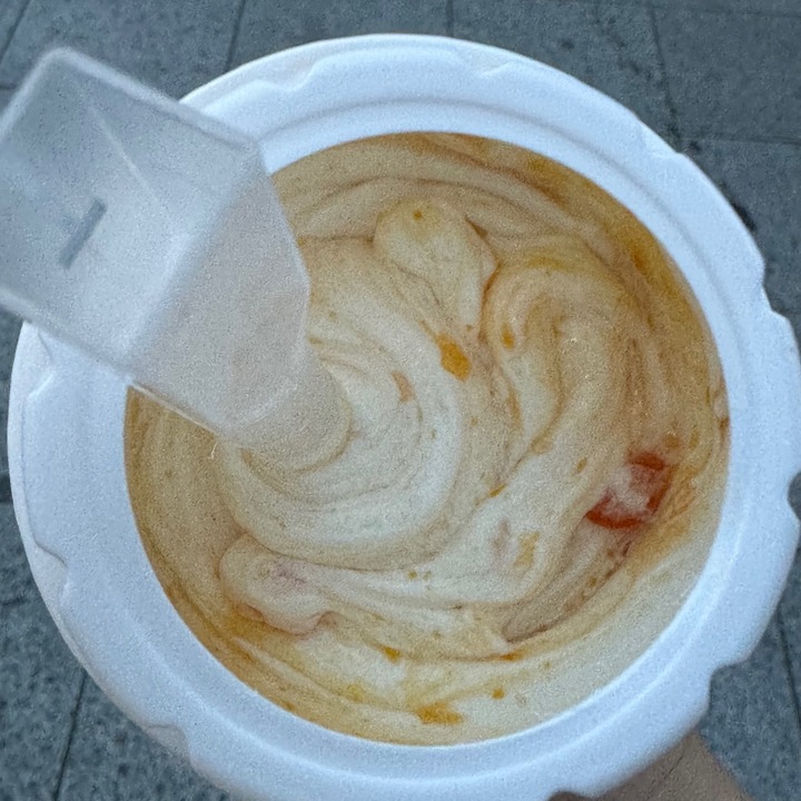 토네이도 망고젤리 젤리는 많이 들어있지 않았고 엄청 농축된 망고 시럽이 들어간 것 같았다 첫입은 맛있었는데 아이스크림이 녹고 뒤로 갈수록 희한하게 느끼한 맛만 남았었다....... 망고시럽이 조금 덜 들어갔으면 좋았었겠다~하는 아쉬움