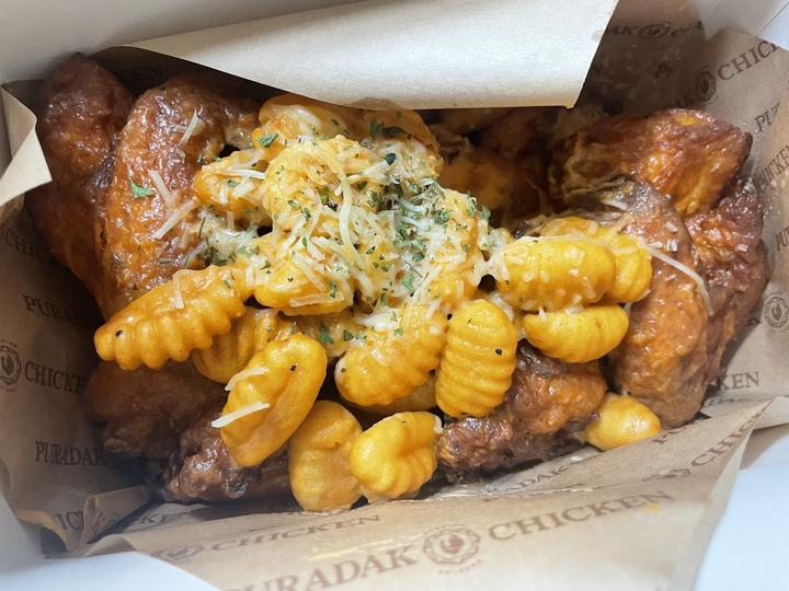 투움바 파스타 소스에 치킨을 버무린 메뉴. 아웃백 투움바보다는 약간 더 매콤한 것 같습니다. 치즈도 따로 뿌려져 있어서 좀 느끼한 편. 같이 들어 있는 뇨끼는 데코 효과는 있는데 맛이 없어서 다 먹기 힘들었슴당