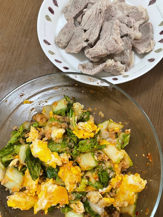 ✔️ 봄동 비빔밥 봄동 막차탑니다. 달달한 배춧잎 먹는 것 같아요. 목살 보쌈과 함께 한입하면 크으🥬 #쑥절미템
