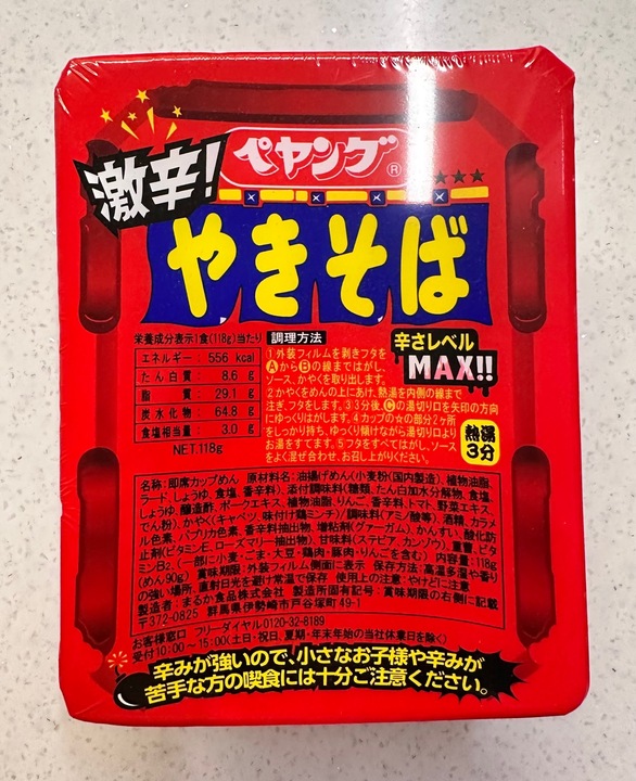 #페양구 #게키카라야키소바 #ペヤング #激辛やきそば <야키소바 스리즈 4> 페양구 야키소바의 매운맛 버전 중에 하나. 우연히 일본 편의점에서 발견을 해서 궁금증에 사봤다. 激辛: 격신. 우리말로 하면 격하게 맵다 정도의 뜻일테다. 일본어로는 게키카라. 아주 맵다는 뜻이다. 아주 매운 야키소바이고 맵기 레벨이 3. 너무 매우니 아이들이 먹거나 손대지 말라는 경고가 있을 정도. 구성은 면과 채소들, 그리고 소스. 오리지날에... 더보기