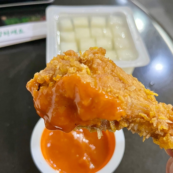 bhc신메뉴 콰삭킹.. 기대안했는데 맛있어요!! 튀김옷 엄-청 바삭하고 고소한데 끝에 맛은 매콤하게 마무리되는??? ㅋㅋㅋ암튼 새로워요 찍어먹는 소스는 스윗하바네로소스라는데 이것두 킥인거같아요 느끼함을 잡아주는 매콤함이 있어서 담에 주문할때는 하나 더 추가하려구유🌶️🌶️ 일반 양념치킨 소스랑은 달라요, 칠리소스랑 더 가까운듯? 윙•봉•다리만 있는 콤보로 주문해서 23,000원 이었어요!