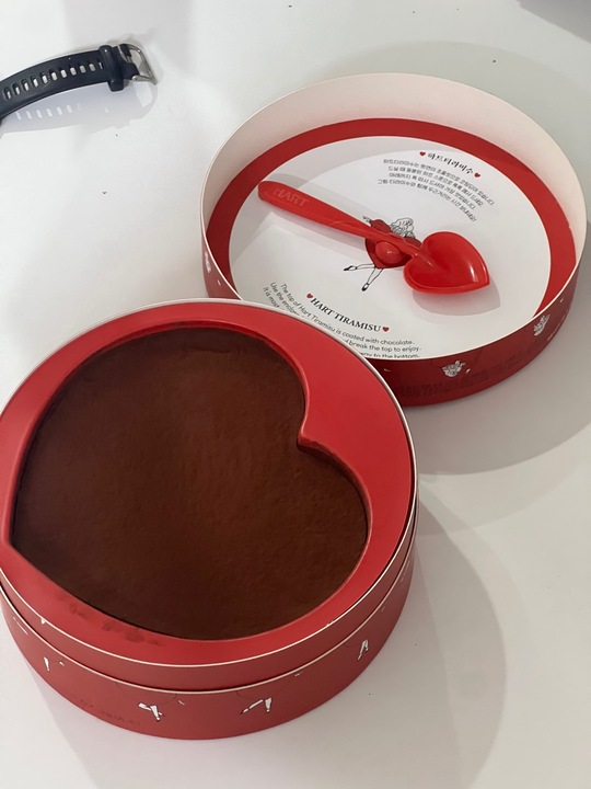 톡 깨먹는 하트 티라미수. 초콜렛이 꽤 두껍다. 치즈가 아주 달콤하고 부드러운데, 리치해서 많이 먹으면 속이 느글거림. 서너사람 후식 분량…? 냉동보관이 된다는 점 때문에 선물하기도 너무 좋다! 재구매 의사 있음