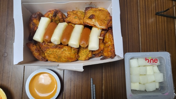 처음 먹어보는데 기대했다가 실망. 바사삭인데 눅눅하다. 별로 매운 맛도 없고...박스에 들어갔으니 조금 식고 뭐 그럴순 있겠지만.... 고블링 소스만 맛있었다.