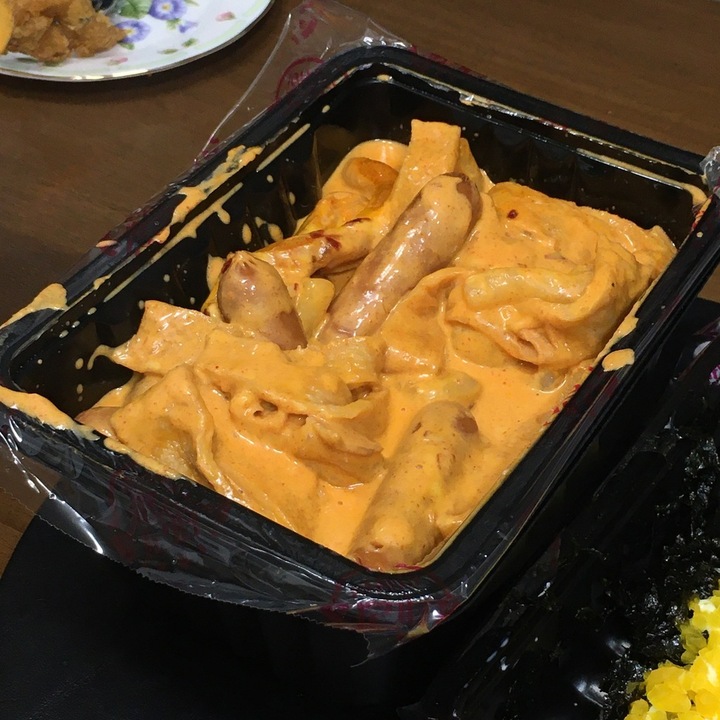 ✔️투움바 떡볶이 가끔 이런 느끼하고 진한 떡볶이가 당길 때가 있어요. 로제보다 더 진해서 느끼한 거 좋아하시면 추천 드려요. 생각보다 안 매워서 다음엔 3단계 도전. 닭강정도 맛 괜찮아요. #쑥절미템
