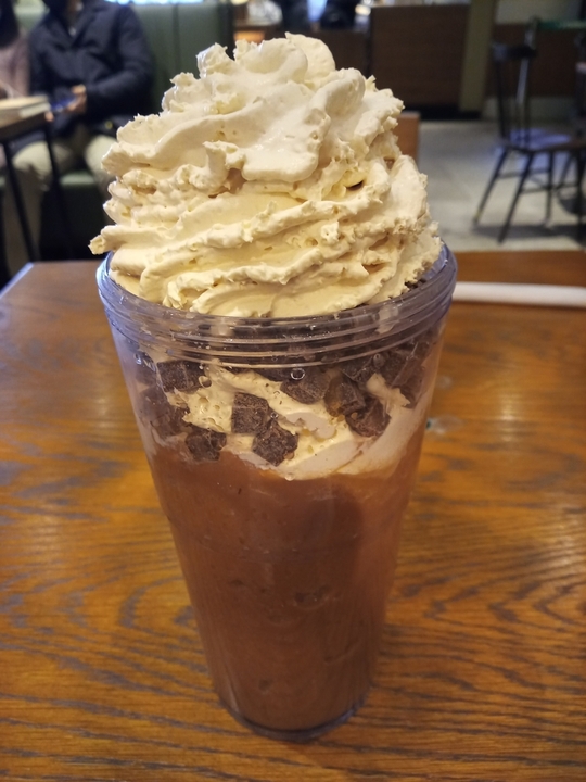 쿠폰 사용기간이 가까워져서 오랜만에 자바칩 먹음 통자바칩으로 올리고 오트밀크고 바꾸고 휘핑많이 ㅋㅋㅋ 휘핑을 사랑하는 나는 오늘 역대급으로 많이 줘서 행복했다 ㅋㅋ 파트너분 천사신가봐 ㅋㅋ 첨에 조금줘서 더주세요 했더니 많이 올려주고 리필했더니 진짜 많이 줘서 완전 행복 ㅋㅋㅋ
