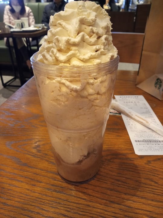 자바칩 프라푸치노에 자바칩 반은 갈고 반은 그대로+에스프레소 휩..이 천재 조합을 알려주시고 계산까지 해주신 뫄님 정말 사랑해 자바칩 오독오독 씹어먹으니까 힘이 막 나더라구..