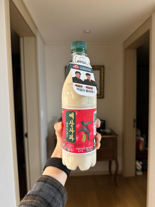 예산시장에서 별 기대 안하고 사왔던 예산사과막걸리인데요, 그냥 단 과일막걸리 생각했는데 단맛도 강하지않고 도수대비 부드러워서 넘 맛있게 먹었어요!! 한두병 더사올걸!!