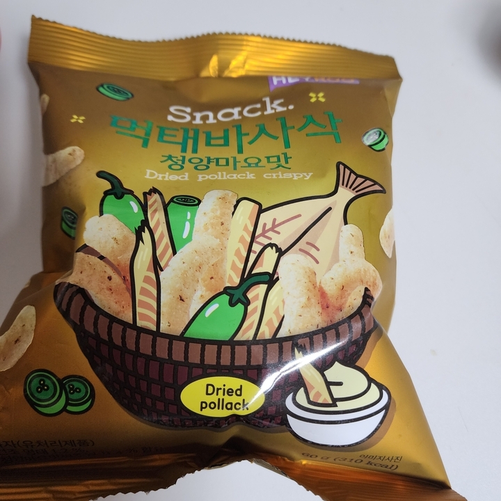 이름은 바사삭이지만 바삭하진 않고 좀 포스슥 입안에서 부서지는 타입. 먹태와 청양맛이 나긴 난다. 먹다보면 끝에 좀 맵게 느껴진다. 단맛이 좀 덜해서 더 괜찮게 먹은듯.