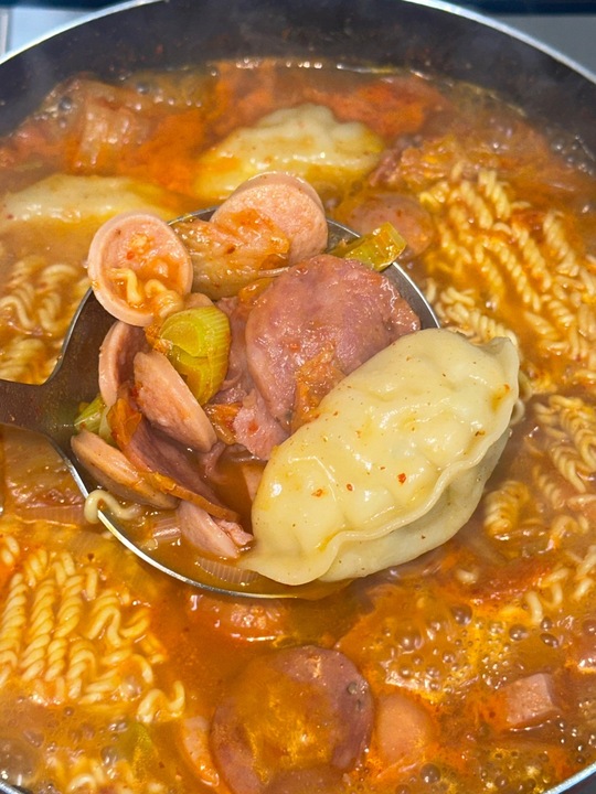 밀키트 부대찌개 중에 1티어로 뽑고 싶은 형부부대찌개 라면사리부터 만두, 좋은 품질의 햄으로 알차게 구성되어있어요. 좋은 햄을 썼다는 게 느껴지기도 했고 기대 안했던 만두가 맛있어서 놀랐답니다👍🥟 실비김치를 사용했다보니 생각보다 매운 편이라서 물을 많이 넣으시거나 치즈 같은 재료 더해서 드시는 걸 추천드릴게요‼️