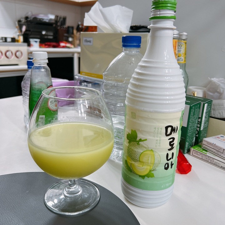 메론맛 아이스크림 맛이 나는 막걸리! 막걸리지만 막걸리 맛이나 향은 많이 나지 않고 아이스크림 맛이 나기 때문에 식전주나 식후에 디저트처럼 마시기 좋은 것 같다!