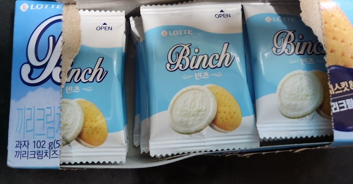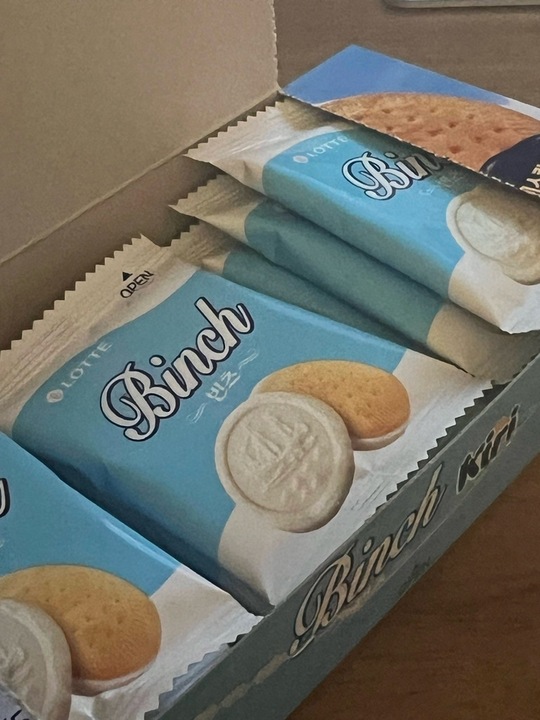 동네 마트 갔는데 과자 매대 한 켠이 끼리 시리즈로 도배되어 있더라 ㅇㅂㅇ 끼리 커스터드 끼리 칸초 끼리 찰떡파이,, 크림치즈 맛을 대~~단히 좋아하는 것은 아니지만 궁금해서 빈츠 작은 사이즈만 사와봤는데 결과는 얼추 만족 당도가 높은 끼리 크림치즈 맛이다 은근 중독성 있어서 두 번에 걸쳐 다 먹음 또 사먹을지는 미지수 취향인 사람은 엄청 좋아할 것 같다