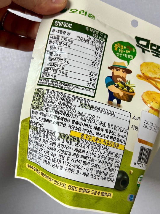 올리브앤 솔트맛. 그냥 오리지날이 더 내 취향. 올리브 존재감이 상당하다.