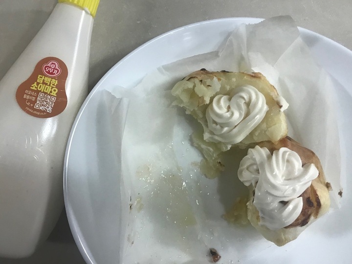 #나의_비거니즘_일기 #비건 감자에 싹이 나서 어쩔 수 없이 삶아먹었다. 오뚜기에서 담백한 소이마요를 출시하여 거기에 비벼 먹는 중!