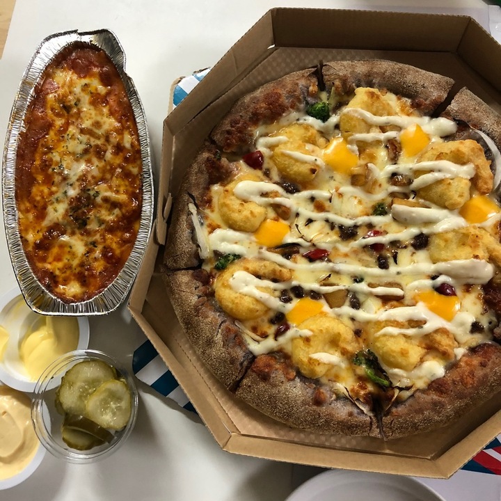 우와 너무 맛있다 7번가 피자 최고는 체다치즈 포테이토인데 그것에 버금가는 맛. 오븐 파스타는 익히 아는 그 맛이고 피자가 너무나 맛있다. 아, 위에 올린 소스는 매콤한거 말고 달달한 타르타르 소스로 바꾼 것. 느끼하고 치즈맛 풍성한거 좋아하는 분께 추천, 토마토 소스 맛이 많이 나진 않고 적당히+위에 재료들과 치즈의 고소함 어우러져 미쳤다