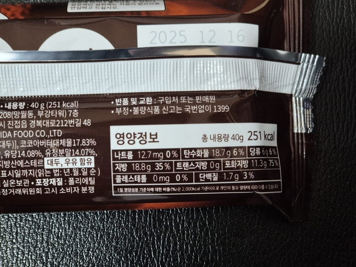 GS25 갔는데 1500원에 원플원 행사 중이길래 사 봤어요. 패키지에 있는 거처럼 큰 초코모찌가 2개 들어 있는 건 줄 알았다가 작은 생초콜릿이 여러 개 들어 있어서 조금 놀랐지만... 원재료가 경화팜핵유가 맨 앞이라 도대체 뭘로 만든 거지 싶었지만... 포화지방 75%나 되는 주제에 트랜스지방 0%라고 크게 써 놓은 게 너무 어그로 같지만... 맛은 생각보다 괜찮아서 원플원 행사 때는 사 먹을 만해요!