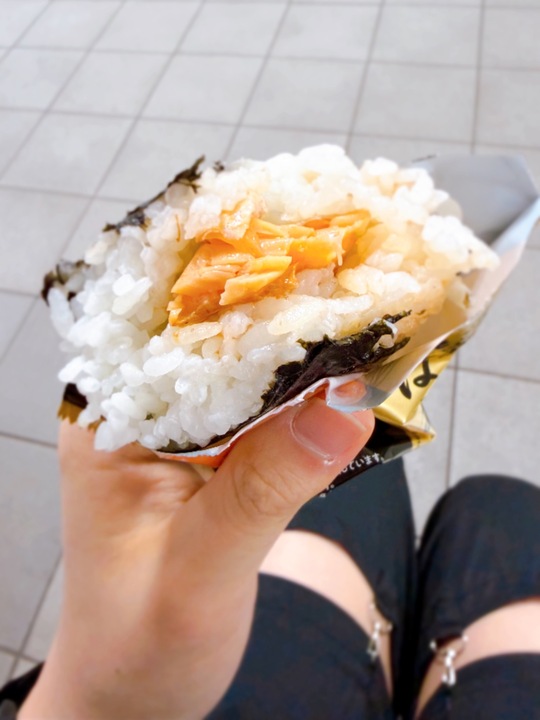 鮭はらみおむすび 금액대가 좀 있어서 (그래봤자 100엔 내외) 출국날 마음먹고 구매해봄 주먹밥 안에 연어뱃살이 꽤 두둑하게 들었습니다 거슬리지 않게 비율을 잘 맞춘게 포인트 맛이 근데 진짜 꽤 괜찮네요 비린맛도 거의 없고 딱 연어 특유의 한 발짝만 더 가면 느끼해지는 그 고소함을 살림 기회 되면 또 먹고싶음